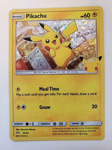 The scratch is pretty in line with border of picture of Pikachu and isnt very obvious. 2021 McDonalds 25th Anniversary Pokemon Pikachu Holo 2525 trading card. The most valuable Mcdonalds Pokémon trading game card is the holo Pikachu card at 50 CDN including shipping fee.
